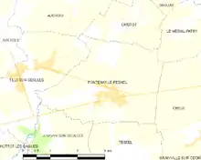 Operation Epsom, the VIII Corps attack due on 26 June, was vulnerable to a German counter-attack from the Rauray Spur, an area of high ground to the west, which overlooked the line of advance of 15th (Scottish) Infantry Division around the village of Cheux. On 25 June, XXX Corps was to conduct Operation Martlet, seizing the Noyers area to deprive the Germans of observation eastwards and the opportunity to counter-attack VIII Corps from the high ground. When the flank of VIII Corps had been secured, XXX Corps was to attack southwards towards Noyers and Aunay-sur-Odon.[7][8] The 49th Division was to reach the first objective ("Barracuda") on the road between Juvigny and Fontenay, with three battalions and then advance 1,000 yd (910 m) south to the second objective ("Walrus") at Tessel Wood and the farm at St. Nicholas, with two fresh battalions.[9] The division was then to advance to the final objective ("Albacore") at Rauray village and the Rauray Spur, to establish a line from Rauray to Vendes and Juvigny-sur-Seulles (Juvigny), to secure the right flank of the 15th (Scottish) Infantry Division.[10]