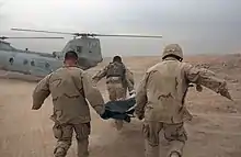 The battle proved to be the bloodiest of the war and the bloodiest battle involving American troops since the Vietnam War. Comparisons with the Battle of Hue City and the Pacific campaign of World War II were made.[59] Coalition forces suffered a total of 107 killed and 613 wounded during Operation Phantom Fury. U.S. forces had 54 killed and 425 wounded in the initial attack in November.[11] By 23 December when the operation was officially concluded, the casualty number had risen to 95 killed and 560 wounded.[12] British forces had 4 killed and 10 wounded in two separate attacks in the outskirts of Fallujah.[13][14] Iraqi forces suffered 8 killed and 43 wounded.[11] Estimates of insurgent casualties are complicated by a lack of official figures. Most estimates place the number of insurgents killed at around 1,200[60] to 1,500,[15] with some estimations as high as over 2,000 killed.[11][12] Coalition forces also captured approximately 1,500 insurgents during the operation.[15] The Red Cross estimated directly following the battle that some 800 civilians had been killed during the offensive.[17][61][62][63] The Iraq Body Count project reported between 581 and 670 civilian deaths resulting from the battle.[16]