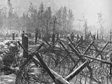 Originally the operation was due to begin on 1 January, but poor ice conditions on the Neva caused the offensive to be delayed until 12 January.[17] A number of measures were taken to prevent the details of the operation being revealed to the Germans. Only a limited number of senior officers were involved in the planning, all redeployments took place in bad weather or at night and simulated attack preparations were made elsewhere to confuse the German side.[19]