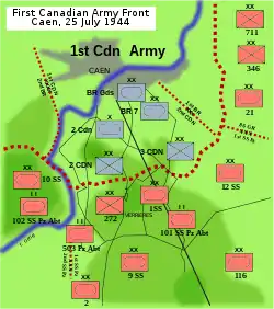 Operation Spring (July 25–27, 1944) was an offensive operation of the Second World War conducted by II Canadian Corps during the Normandy campaign in 1944. The plan was intended to create pressure on the German forces operating on the British and Canadian front simultaneous with Operation Cobra, an American offensive. Operation Spring was intended to capture Verrières Ridge and the villages on the south slope of the ridge.[1] The German defence of the ridge contained the offensive on the first day and inflicted many casualties on the Canadians.