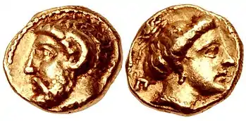 Ophellas' later career is somewhat obscure. Justin[5] styles Ophellas "rex Cyrenarum", king of Cyrene, but it seems improbable that he had really assumed the regal title. He was married to Eurydice of Athens,[6] a descendant of Miltiades, and appears to have maintained friendly relations with Athens. It seems likely that he was left by Ptolemy as governor of Cyrene, which he presumably continued to hold on behalf of Ptolemy until 309/8 BC: his name is not mentioned in the account given by Diodorus[7] of the revolt of the Cyrenaeans in 313 BC, which was rapidly suppressed by Ptolemy.