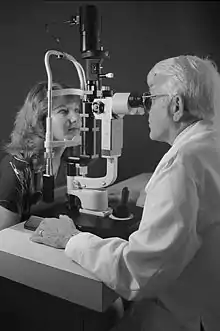 ![]() Eye examination with the aid of a slit lamp | |