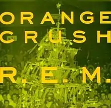"Orange Crush" is a song by the American alternative rock band R.E.M. It was released as the first single from the band's sixth studio album, Green, in 1988. It was not commercially released in the U.S. despite reaching number one as a promotional single on both the Mainstream and Modern Rock Tracks (where, at the time, it had the record for longest stay at number one with eight weeks, beating U2). It peaked at number 28 on the UK Singles Chart, making it the band's then-highest chart hit in Britain, where they promoted the song by making their debut appearance on Top of the Pops.[3]