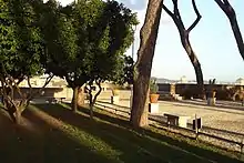 The Orange Trees Garden (Italian: Giardino degli aranci) is the name used in Rome to describe the Parco Savello. It is about 7,800 square meters and is located on the Aventine Hill. The park offers an excellent view of the city. The garden, as it is today, was designed in 1932 by Raffaele De Vico.[1] It was constructed to offer public access to the view from the side of the hill, creating a new ‘’belvedere’’, to be added to the existing viewpoints in Rome from the Pincian Hill and the Janiculum.