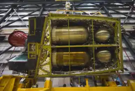 Following the retirement of the Shuttle, these engines were repurposed for use on the Orion spacecraft's service module.[10] This variant uses Monomethylhydrazine as fuel, with nitrogen tetroxide (N2O4) as oxidizer.[11] It is planned to be used for the first six flights of the Artemis program, afterwards it would be replaced by a new "Orion Main Engine" starting Artemis 7.[12]