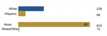 Orchard Hills has a population of 990.[5] Orchard Hills' majority group are Asian Americans who are 68 percent of the population, the rest being 24.1 percent White and 6.7 percent Hispanic/Latino. A majority of Orchard Hills residents are female. In addition, Orchard Hills has the highest percent of children out of the neighborhoods of Irvine.[6]