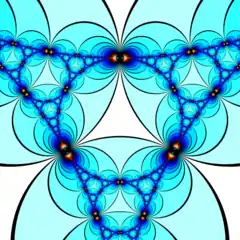 ![]() Rendered intersection of honeycomb with the ideal plane in Poincaré half-space model |