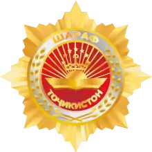 The Order of Glory or Sharaf Order (Tajik: Ордени «Шараф») is a state distinction and award of the Republic of Tajikistan. It is awarded to people for their services to the development of the economy, social sphere, science, culture and education, exemplary state and military service and fruitful public activity.[1] The Order of Honor has two degrees: