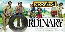 Ordinary is a 2012 Indian Malayalam comedy thriller film directed by Sugeeth and written by Nishad K. Koya and Manu Prasad. The film stars Kunchacko Boban, Biju Menon, Asif Ali and Jishnu Raghavan. The music was composed by Vidyasagar.[5] The film follows the life of a driver and conductor of a K.S.R.T.C. bus that travels from Pathanamthitta to the village of Gavi via Angamoozhy.