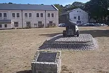 Ordnance Yards were also constructed in colonial ports overseas; like their counterparts in Britain, these were usually built in the vicinity of naval dockyards. Bermuda's, begun in the 1830s, remains largely intact behind the dockyard fortifications; its magazines and storehouses are arranged around a small pool, where boats would arrive by way of a tunnel through the ramparts to be loaded with ammunition.[24]