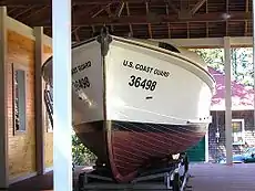 Further south outside Tillamook sits the Tillamook Air Museum, which is housed in one of the two former military blimp hangars of the former Naval Air Station Tillamook. The structure was originally known as "Hangar B" and was part of a pair of hangars built by the U.S. Navy in 1942.[47] "Hangar A" was destroyed by a fire in 1992. However, the concrete pilings that held the massive hangar doors erect still stand.