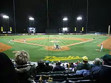 After the 1981 season, baseball and three other varsity sports were dropped by the university (men's gymnastics, women's golf, and women's soccer) due to a budget crisis,[3][8][9] and baseball became a club sport in March 1983.[10]