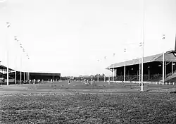 Oregon's second home game of 1894, a 0–0 tie with Pacific College, was played at Stewart's Track, a racing facility at the end of Willamette Street in Eugene, that hosted horse and mule races and the occasional track meet.[3] In May 1894, the Oregon baseball team began playing games there, and the field was set up for football in late November for the Pacific contest on Thanksgiving Day. The game was relocated from the Athletic Field used for the first game, because the lack of fences at Athletic made it impossible to charge admission; Stewart's Field was completely fenced.[4][5]