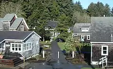 The University of Oregon first established OIMB as a summer research and education program in 1924, operating out of tents along the beach of Sunset Bay. OIMB settled into its current location in 1931, when 100 acres of the Coos Head Military Reserve, including several buildings from the Army Corps of Engineers, was deeded to the University of Oregon. In 1937, OIMB was transferred to Oregon State College (now Oregon State University), and remained theirs until the federal government required the property during World War II. Following the war, OIMB was initially returned to Oregon State University, but the University of Oregon reclaimed it in 1955 as a summer research facility.[1] Since 1966, OIMB has been expanding its educational programs and its campus, constructing more teaching and research facilities and developing year-round educational programs. Notably, the Loyd and Dorothy Rippey Library was built in 1999, and construction of the Charleston Marine Life Center began in 2012.[1][4] The CMLC is entirely powered by a wind turbine that was erected in 2014. OIMB has functioned as a year-round research facility since 1966, and courses were developed for fall, spring, and summer soon after.[1] Winter classes became available beginning in 2017.[5]