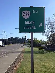 Oregon Route 38 is an Oregon state highway that runs between the city of Reedsport, on the Oregon Coast, and an interchange with Interstate 5 near the communities of Curtin and Anlauf. It is also known as most of the Umpqua Highway No. 45 (see Oregon highways and routes), as the western portions of the highway run alongside the Umpqua River. The highway lies entirely within Douglas County.