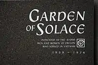 The Oregon Vietnam Veterans Memorial is an 8-acre (0.03 km2) outdoor war memorial dedicated to Oregonians who served in the Vietnam War. It is located in Portland, Oregon's Washington Park at 45.5120°N 122.71857°W. The memorial was dedicated in 1987, inspired in 1982 by visits to the national Vietnam Veterans Memorial by five veterans and the parents of a Marine killed in Vietnam.[1] Landscape architecture firm Walker Macy of Portland designed the memorial,[2] while construction labor and materials were almost entirely volunteer donations.The font used in the memorial was created for the exclusive use of the Memorial. It was designed by Janis Price, and is called Hoyt, in recognition of the Arboretum.