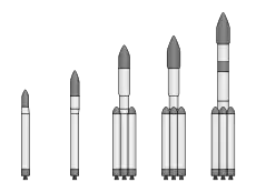 A formal industry-wide tender for the development of the crewed launch vehicle to launch PPTS was initiated at the beginning of 2009. Although the agency delayed the announcement of the winner, many unofficial sources in Russia maintained that TsSKB Progress, based in Samara and KB Mashinostroenia, would lead the development of the new rocket.[21] It was believed that the launch vehicle, named Rus-M, would feature a common core stage and a variable number of boosters, each equipped with powerful RD-180 engines, burning a mix of liquid oxygen and kerosene. The engine was originally developed by Moscow-based NPO Energomash for the US Atlas V rocket and its performance to date has been impressive. The second stage was expected to sport a pair of RD-0124 engines, currently in use on the Soyuz-2 rocket. Thus, both stages would have been equipped with existing engines, greatly reducing the cost and the risk to the overall project.[12] In October 2011, it was announced that the Rus-M program was being canceled.[22]