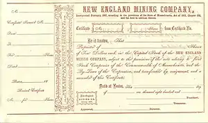 - "New England Mining Company Stock Certificate". 1926. Retrieved 6 August 2010.
