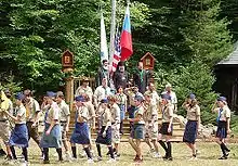 After the Russian Revolution of 1917, the organization Русский Скаут went into exile, and continued in many countries where fleeing White Russian émigrés settled, establishing groups in France, Yugoslavia, Bulgaria, Turkey, Estonia, Lithuania, Latvia, Finland, Poland, Romania, Hungary, Belgium, Argentina, Chile, Canada, Australia, United Kingdom, United States and, for a short time also, in the Netherlands and Surinam.[1][2] A much larger mass of Russian Scouts moved through Vladivostok to the east into Manchuria and south into China and Hong Kong.[1][2][3]