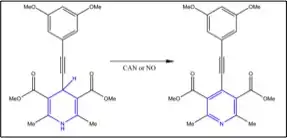 Chen et al.[19] designed a system that would undergo self-assembly by triggering changes in intermolecular interactions. They used an oxidation-induced planarization to trigger gelator self-assembly and gelation through donor-acceptor π-stacking interaction.[19] The interesting part is that both strong oxidants such as cerium(IV) ammonium nitrate and weak oxidants like nitric oxide, NO can induce gelation. Figure 3 shows the oxidation of dihydropyridine catalyzed/induced by NO. NO has been used as an analyte or biomarker for disease detection, and the discovery of NO's role in analyte-triggered gelation system no doubt has opened new doors to the world of chemical sensing.
