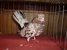 The Oriental Roller is a breed of fancy pigeon developed over many years of selective breeding. Oriental Rollers, along with all other varieties of domesticated pigeons, are descended from the rock pigeon (Columba livia).[1]