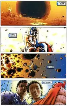 - Wolfman, Marv (w), Pérez, George (p), Ordway, Jerry (i). "Aftershock" Crisis on Infinite Earths 11 (February 1986), DC Comics