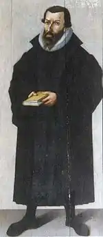 In Protestant Churches[lower-alpha 3] the custom as to vestments differs widely, corresponding to a similar divergence in tradition and teaching. At the Reformation two tendencies became apparent. Martin Luther and his followers regarded vestments as among the adiaphora, and in the Churches which afterwards came to be known as "Lutheran" many of the traditional Catholic vestments were retained. John Calvin, on the other hand, laid stress on the principle of the utmost simplicity in public worship; at the councils in Geneva, the traditional vestments were absolutely abolished, and the Genevan model was followed by the Calvinist or "Reformed" Churches throughout Europe.[7]