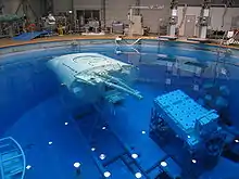 The Japanese Experiment Module (JEM), christened Kibō ("hope") in 1999, is Japan's first manned spacecraft. Kibō consists of a pressurised laboratory dedicated to advanced technology experiments, education and art, a cargo bay, an unpressurised pallet for vacuum experiments in space, a robotic arm, and interorbital communication system. While the proposed space station was redesigned many times around Kibō, the only significant change has been the placement of its ballistic shielding. Its final position at the front of the station increases the risk of damage from debris. The ESA and NASA, by contrast, both reduced the size of their laboratories over the course of the programme. The Japanese National Space Development Agency (NASDA) formally submitted the JEM proposal to NASA in March 1986, and by 1990 design work began.[2][9][10] Constructed in the Tobishima Plant of Nagoya Aerospace Systems Works, by Mitsubishi Heavy Industries, Ltd., Kibō made its way to the Tsukuba Space Center and in 2003 Kibō was shipped, first by river barge and then by ship, to America. In 2010, Kibō won the Good Design Award, a 66-year-old consumer and industry award which identifies the best of Japanese craftsmanship.[11][9]