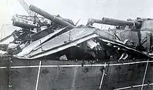 They remained part of the 2nd BS through February 1919,[35] but had been transferred to the 3rd BS of the Home Fleet by May, Orion becoming the squadron flagship.[36] By the end of 1919, the 3rd BS had been disbanded and the sisters had been transferred to the Reserve Fleet at Portland, although Monarch was transferred to Portsmouth in early 1920.[37] Monarch and Thunderer were temporarily recommissioned during the summer of 1920 to ferry troops to the Mediterranean and back.[28] Orion joined Monarch at Portsmouth later in the year and became the flagship of the Reserve Fleet.[38] Conqueror followed Orion to Portsmouth and relieved her as flagship in mid-1921 and the latter ship was again temporarily recommissioned to transport troops. Thunderer was converted into a training ship for naval cadets in 1921 and Orion became a gunnery training ship after being relieved. In accordance with the terms of the Washington Naval Treaty, Orion and Conqueror were sold for scrap in 1922 and broken up the following year; Monarch was initially listed for sale, but was hulked instead. In 1923, she was converted into a target ship and was used to test the effects of bombs and shells, until she was sunk in early 1925. Thunderer was the last surviving ship and was sold in late 1926. On her way to the scrapyard, she ran aground at the entrance to the Port of Blyth, Northumberland, but was refloated and scrapped the following year.[23]