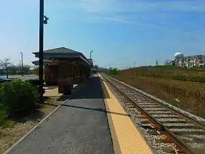 - "Metra stopping at new station". Chicago Tribune. June 6, 1990. p. 3, Section 2. Retrieved January 19, 2019 – via Newspapers.com.