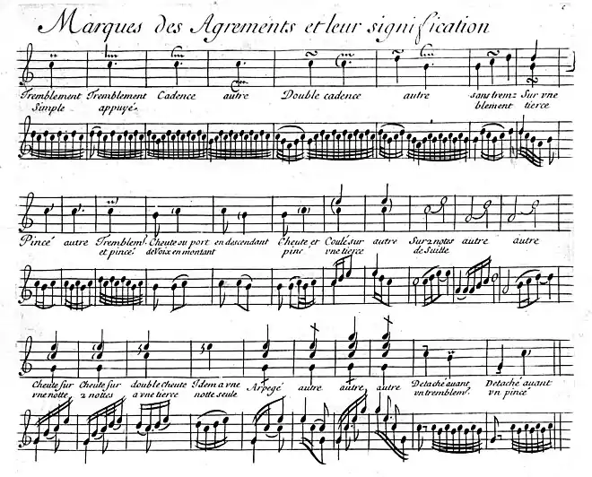 Another realisation can be seen in the table in Pièces de clavecin (1689) by Jean-Henri d'Anglebert: