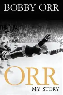 Orr: My Story is a 2013 autobiography written by Bobby Orr.[1] Orr is a former professional hockey player who played in the National Hockey League from 1966 to 1978. Orr played for two teams: the Boston Bruins and the Chicago Blackhawks. Considered one of the greatest players of all time, Orr's career was cut short by multiple knee injuries and surgeries. Orr was enshrined in the Hockey Hall of Fame in 1979 at age 31, the youngest to be inducted into the Hall at that time.[2][3] Orr is also known for being one of the first major sports figures to use an agent. Tragically, at the end of his career, Orr discovered that the agent, Alan Eagleson, had embezzled most of his money, leaving him deeply in debt.[4]
