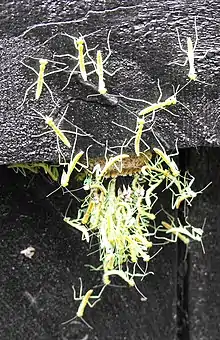 The New Zealand mantis is vulnerable to the use of pesticides, both directly and through the effects of a diminished food supply, and their ootheca are sometimes attacked by parasitic wasps.[4][11] Male O.novaezealandiae appear to be attracted to females of the introduced species M. caffra, which can result in their fatality due to the sexually-cannibalistic behavior of the latter species.[12]