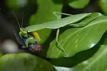Orthodera novaezealandiae, (Māori: whe)[1] known as the New Zealand mantis or the New Zealand praying mantis, is a species of praying mantis which is, as both the scientific name and common names suggest, indigenous and endemic to New Zealand.[2][3][4][5][6]