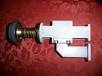 An orthomode transducer (OMT) is a waveguide component that is commonly referred to as a polarisation duplexer. Orthomode is a contraction of orthoganal mode. Orthomode transducers serve either to combine or to separate two orthogonally polarized microwave signal paths.[1] One of the paths forms the uplink, which is transmitted over the same waveguide as the received signal path, or downlink path. Such a device may be part of a very small aperture terminal (VSAT) antenna feed or a terrestrial microwave radio feed; for example, OMTs are often used with a feed horn to isolate orthogonal polarizations of a signal and to transfer transmit and receive signals to different ports.[2]