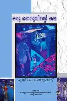 Oru Theruvinte Katha (English: The Story of a Street) is a Malayalam novel written by S. K. Pottekkatt and published in 1960. It sketches a host of characters who spend their lives making a living in ‘The Street’. However the central character can be discerned as Krishnakuruppu, who is mostly addressed as 'Kuruppu', 'Paper Kuruppu' and even 'Vishamasthithi' due to his usage of the phrase 'Kaaryam Vishamasthithi' (Malayalam: കാര്യം വിഷമസ്ഥിതി) or 'situation is difficult' in English when calling out headlines while selling news papers. Some of the minor characters are introduced to the reader through Kuruppu, where he is shown to be in conversation about them with other prominent characters of the street. The street is based on the S.M. Street or popularly known as Mithai Theruvu (Sweet Meat Street) in Kozhikode, Kerala. It won the Kerala Sahitya Academy Award of 1961.[1]
