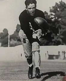 Orville Ernest Mohler (May 29, 1909 – November 27, 1949), sometimes referred to as Orv Mohler, was an American football and baseball player. He grew up in Alhambra, California, and attended the University of Southern California (USC).[1] At USC, Mohler was the student council president, shortstop for the USC Trojans baseball team, and quarterback for the USC Trojans football team.[2][3] He led the 1931 USC Trojans football team to a national championship and a victory in the 1932 Rose Bowl, and, at the end of the 1931 season, he was selected by the Central Press Association as a second-team All-American fullback and by the Associated Press as a third-team All-American quarterback.[4][5] In 1933, after graduating from USC, Mohler played professional baseball in the Pacific Coast League for the Mission Reds. Mohler was married on August 13, 1933 to Bernadine Olson.[2]