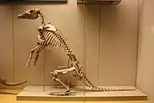 The first aardvark fossil discovered was originally named Orycteropus gaudryi (now Amphiorycteropus) and was found in Turolian deposits on the island of Samos.[1] Since then, representatives of the order Tubulidentata have been located from the Oligocene in what is now Europe, and it is believed that the order probably originated around 65–70 million years ago or in the Paleocene.[5][6] They are thought to be closely related to the now extinct Ptolemaiida, a lineage of carnivorous afrotheres.[7][8] The family arose in Africa in the Early Miocene epoch, and spread to Eurasia later in the Miocene. Most of the family's diversity had become extinct by the end of the Pliocene.[1]