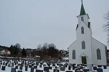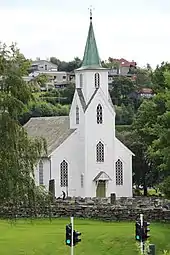 Os Church (Norwegian: Os kyrkje) is a parish church of the Church of Norway in Bjørnafjorden Municipality in Vestland county, Norway. It is located in the village of Osøyro. It is one of the two churches for the Os parish which is part of the Fana prosti (deanery) in the Diocese of Bjørgvin. The white, wooden church was built in a long church design in 1870 using plans drawn up by the architect Ole Vangberg. The church seats about 600 people.[1][2]