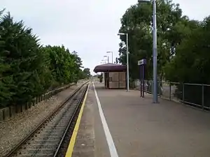 Just south of the station, the line from Adelaide becomes single track for the remainder of the journey to Outer Harbor. It once had two platforms but one closed in the 1980s when the balloon loop north was removed. The unused track was gradually removed, with the last remnants at the level crossing next to the station pulled up in July 2019. Just south of the station, the ICI Osborne railway line branched off to the ICI Osborne works (later owned by Penrice Soda Products). This had industrial passenger service until 1980 and has since been dismantled. Some peak hour services from Adelaide terminate at Osborne.[1]