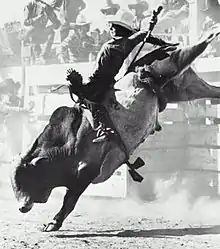 Finally, in 1975, John Davis succeeded in being the first bull rider to ride Oscar and win the bronze statue.[3] Davis conquered Oscar in July 1975 at the California Rodeo Salinas. Davis also won the championship gold buckle that day.[5] Also in 1975, Randy Mager obtained one of his two rides from Oscar at the National Finals Rodeo when he finished as the Reserve World Champion.[6] Even after these rides, Oscar still was ridden very infrequently.[2]