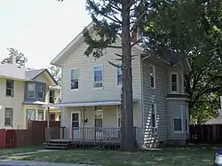 The two-story, frame house built on a stone foundation is an example of a popular 19th-century Vernacular house style in Davenport known as the McClelland.[4] It features a front gable, a three-bay facade with an entrance to one side, and a projecting polygonal window bay on the south side. Some of the embellishments that gave this house interest have either been covered with vinyl siding or have been removed entirely. One of the removed elements was an Adamesque-style porch from around the turn of the 20th-century.[4] It was decorated with swags and ribbon motif in the pediment, and columns in the Tuscan order. It also featured ornamental shingling of the gable ends on the front and on the south side window bay. At one time the window surrounds had small bracketed cornices and heads with incised decorations.