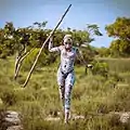 Awuku has said that his work "explores pre-colonial culture but also addresses decolonized practices in contemporary culture"; it looks at the essence of identity of the black body, while advocating for women and seeking to ask empowering questions in society.[7] Referring to the motif of the traditional mask, he says, "My constant use of the ritual mask is based on the belief that it conceptually turns its wearer into the spirit represented by the mask itself."[5]