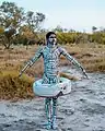 Awuku calls his art Anansinism, inspired by the Akan mythical spider character Kweku Anansi.[3] He often depicts historical Ghanaian Adinkra symbology on the bodies which he paints.[4]