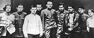 Ryvkin directly participated in the October Revolution in Petrograd as the commander of a combat detachment.[4][7] Ryvkin also participated in the Russian Civil War as an ordinary soldier.[8] At the 1st Congress of the Komsomol, he was elected as a member of the Central Committee of the Komsomol, then became the First Chairman of the Central Committee, and then served as the First Secretary of the Central Committee of the Komsomol which made him the de facto leader of the Komsomol. In 1922, he worked at the People's Commissariat for Education.[9]
