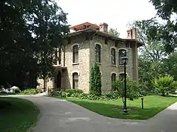 The Oscar Taylor House was built for Freeport banker and attorney Oscar Taylor in 1857. Taylor, the son of Speaker of the House John W. Taylor, opened Freeport's first bank in 1852. The house became a social and cultural center in Freeport, hosting many prominent guests. During the American Civil War the house was used as a station on the Underground Railroad. Fugitive slaves were hidden in the basement behind a secret door fronted with shelving. The door still remains. The house was in the Taylor family until 1944 when it was gifted to form the Stephenson County Historical Society and turned into a historic house museum.[2]