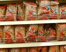 In 1946, the company built its first factory in Bnei Brak, producing noodles.[5] Seven years later, in 1953, upon a request by Israel's first prime minister, David Ben-Gurion, the company added its staple "rice-substitute" product ptitim. In 1964, Osem's snack factory was founded in Holon, and the company's main product was created - the peanut butter-flavoured Bamba.[6] In 1970, the company started producing baked food in addition to introducing the Bissli snacks, which come in several flavours such as falafel, mesquite, BBQ, pizza, and onion. Osem also produces soup powders[7] and markets MSG-free versions of its soup mixes under a green label as opposed to the traditional red one.