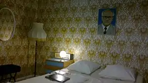 Ostel room with an Erich Honecker photograph hanging at the wall.