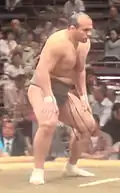 Ōsunaarashi Kintarō (大砂嵐 金崇郎) (born February 10, 1992 as Abdelrahman Shalan, Arabic: عبد الرحمن شعلان) is a retired sumo wrestler from Egypt. He was the first pro sumo wrestler from the African continent. Ōsunaarashi, whose chosen ring name translates into English as "great sandstorm", rose quickly through the unsalaried ranks, gaining the interest of Japanese media and popularity among sumo fans. Ōsunaarashi was promoted to the top tier makuuchi division for the November 2013 tournament. He emerged victorious from his first two matches against yokozuna ranked wrestlers in July 2014.[1] He dropped in rank after injury problems and was forced to retire in March 2018 after being involved in a traffic accident when he was driving without a valid license. After leaving sumo he signed with Rizin FF, a Japanese national mixed martial arts organization where he joined other former rikishi like Baruto Kaito and Akebono Tarō. His mixed martial arts debut was at Rizin 13.