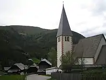 Oswald soon came to be regarded as a saint. Bede says that the spot where he died came to be associated with miracles, and people took dirt from the site, which led to a hole being dug as deep as a man's height.[6] Reginald of Durham recounts another miracle, saying that his right arm was taken by a bird (perhaps a raven) to an ash tree, which gave the tree ageless vigour; when the bird dropped the arm onto the ground, a spring emerged from the ground. Both the tree and the spring were, according to Reginald, subsequently associated with healing miracles.[30][31] Aspects of the legend have been considered to have pagan overtones or influences[31]—this may represent a fusion of his status as a traditional Germanic warrior-king with Christianity. The name of the site, Oswestry, or "Oswald's Tree", is generally thought to be derived from Oswald's death there and the legends surrounding it.[26] His feast day is 5 August. The cult surrounding him even gained prominence in parts of continental Europe; cf. Ožbalt in Slovenia.